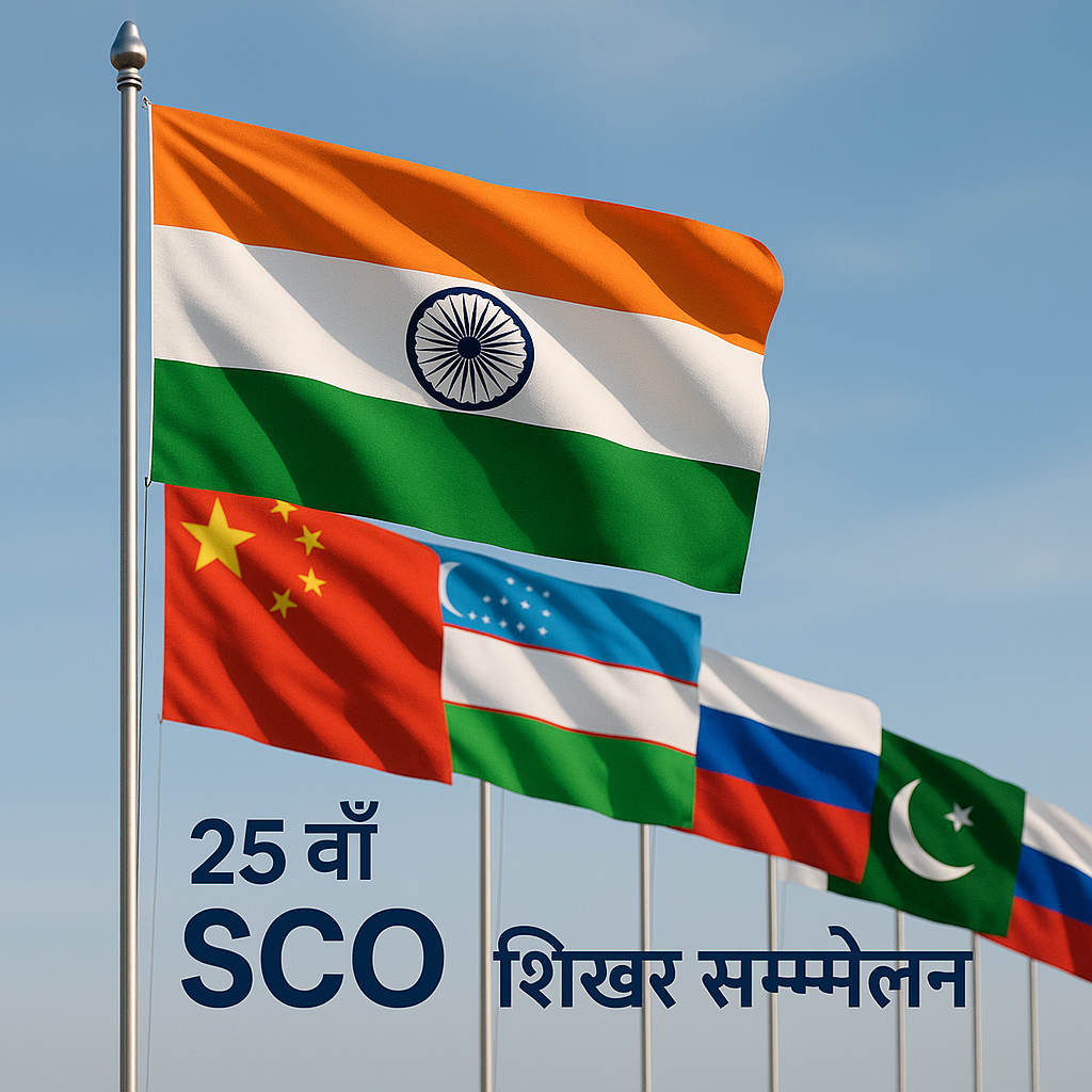 25वां SCO शिखर-सम्मेलन चीन के टियांजिन शहर में संपन्न हुआ। इस सम्मेलन में संगठन के सदस्य देशों के राष्ट्राध्यक्ष और उच्च स्तरीय प्रतिनिधि शामिल हुए जिसमे भारत के प्रधानमंत्री भी शामिल रहे |